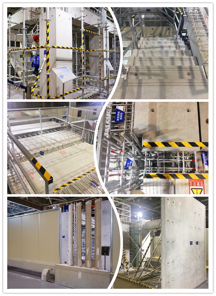 同時展出的還有全預制異形圍墻和可拆卸式臨時圍墻,結(jié)構(gòu)穩(wěn)定,拆裝方便;車間批量生產(chǎn),大大提高了施工效率以及材料重復使用次數(shù)。