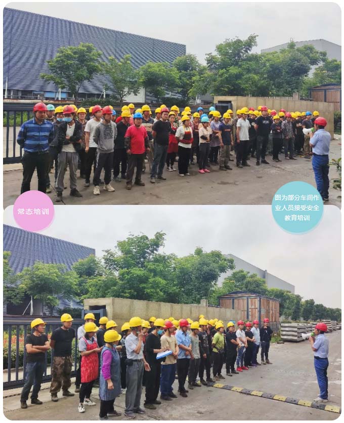 6月“安全生產(chǎn)月”期間,公司安全管理部門分別對(duì)廠區(qū)十個(gè)生產(chǎn)車間、鋼筋車間及堆場(chǎng)車間人員進(jìn)行了集中安全教育培訓(xùn)。此次培訓(xùn)重點(diǎn)為夏季作業(yè)時(shí)的防暑降溫等安全防范事項(xiàng),包括如何預(yù)防中暑,如何防觸電、防雷擊、防淹溺、防火災(zāi)爆炸、防墜落、防扎傷等。