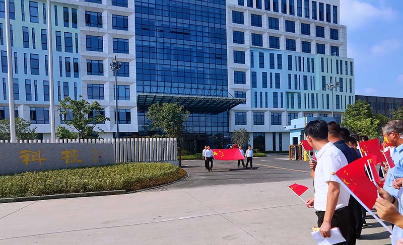 9時28分,升旗儀式正式開始。在眾人的注目下,四名旗手護衛(wèi)著國旗入場。伴隨著激昂的《義勇軍進行曲》,鮮艷的五星紅旗冉冉升起。緊接著,在《明天會更好》的動人旋律中,錦蕭科技司旗也緩緩升起。鮮紅的國旗和錦蕭的司旗在公司生產(chǎn)基地上空迎風飄揚,給員工堅定的信念和無限的力量!