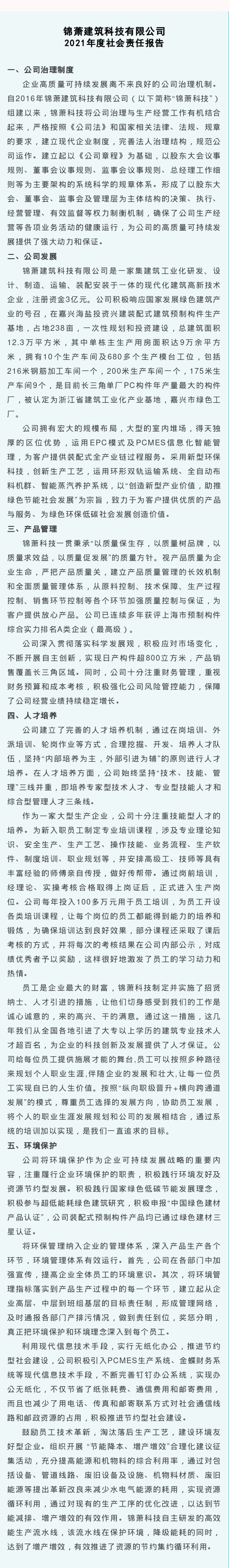 錦蕭建筑科技有限公司2021年度社會(huì)責(zé)任報(bào)告