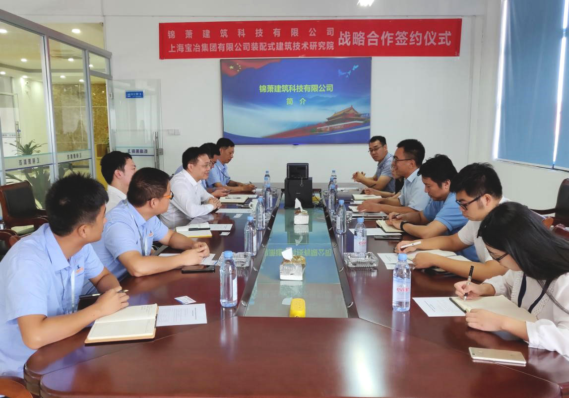 2018年8月28日下午,公司與上海寶冶集團有限公司裝配式建筑技術研究院戰(zhàn)略合作簽約儀式順利舉行。寶冶集團裝配式建筑技術研究院首席研究員劉威,錦蕭建筑科技有限公司董事長李軍等雙方人員共同參加了簽約儀式。