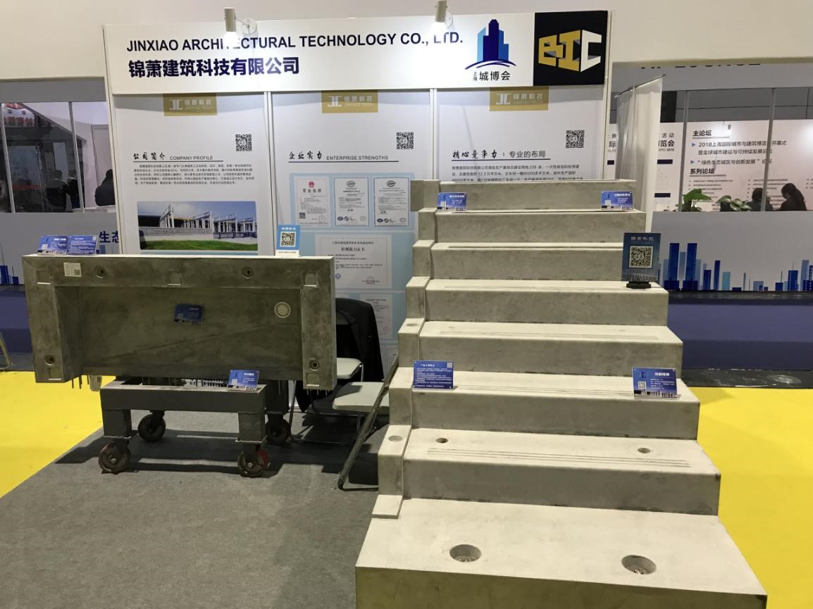 兩次展會,錦蕭科技以最強(qiáng)團(tuán)隊(duì)陣容參與亮相。走進(jìn)錦蕭展區(qū),參觀人氣爆棚,國內(nèi)外客商絡(luò)繹不絕。公司以混凝土預(yù)制構(gòu)件展品--預(yù)制樓梯、預(yù)制空調(diào)板為媒介,通過廠區(qū)沙盤展現(xiàn),背投宣傳片展映,向所有參觀的領(lǐng)導(dǎo)和觀眾展示了公司在裝配式建筑領(lǐng)域所擁有的技術(shù)實(shí)力及強(qiáng)悍的生產(chǎn)能力。